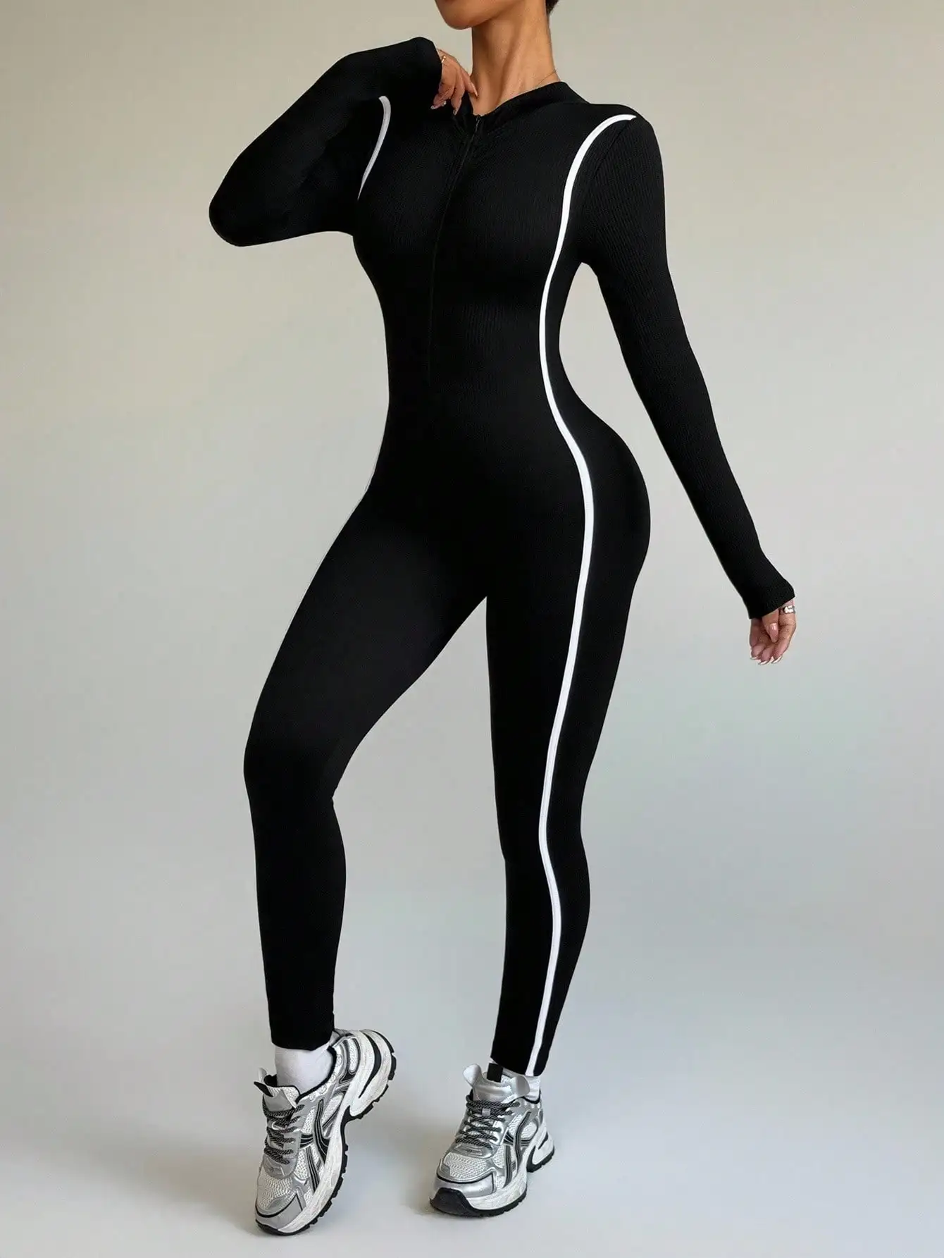Featuring a sporty striped pattern and color-blocking design, this jumpsuit elevates your fitness style.